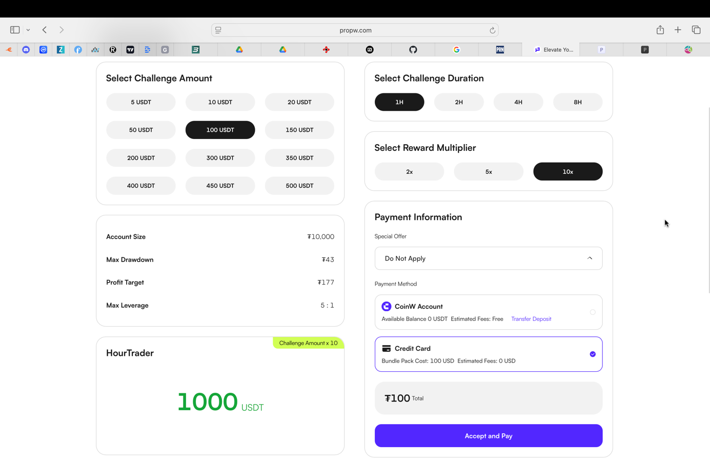 Hodinová obchodní výzva je časově omezená simulovaná obchodní soutěž, při které trader zaplatí vstupní poplatek, obdrží virtuální obchodní účet a musí v předem stanoveném časovém okně splnit zadaný ziskový cíl, aniž by překročil maximální povolený propad účtu. V tomto směru je hodinová obchodní výzva úplně stejná jako ostatní obchodní výzvy od prop firem, jak je znáte. Ale na rozdíl od klasických prop výzev, které obvykle trvají od 1 dne až po neomezeně dlouhou dobu, tak hodinové, už dle názvu, trvají jen pár hodin. V této hodinové obchodní výzvě, ve které si trader zaplatí vstupní poplatek (zvolí si dle sebe od 5 dolarů po 500 dolarů), zvolí časové okno pro obchodování a během této pevně omezené doby se snaží splnit předem nastavený profit target při dodržení maximální povolené ztráty. V případě PropW, což je prop firma, která hodinové obchodní výzvy zavedla jako první, jde podle oficiálních materiálů o simulované obchodování, kde si účastník může vybrat délku 1, 2, 4 nebo 8 hodin, vstupní poplatek v určitém rozpětí a také násobek potenciální odměny, přičemž parametry jako profit-target a drawdown se následně odvíjejí od zvoleného nastavení. Jinak řečeno, nejde o klasickou vícefázovou challenge rozloženou do několika dnů nebo týdnů, ale o krátký test obchodní disciplíny, rychlosti rozhodování a schopnosti pracovat pod časovým tlakem v jednom souvislém obchodním sezení, přičemž maximální zisk je už předem známí (více si vysvětlíme v následujícím odstavci).