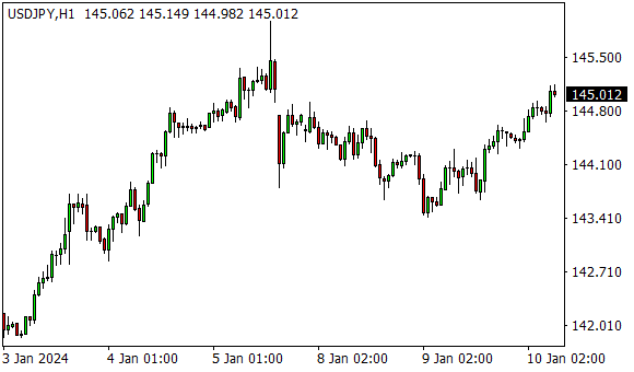 Vývoj měnového páru USD/JPY (1hodinový graf - H1):
