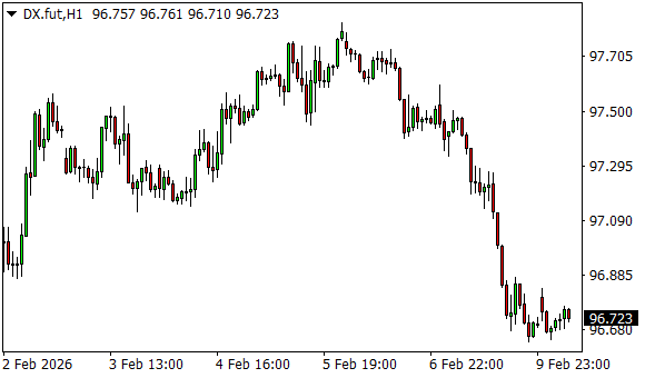Vývoj dolarového indexu USDX (1hodinový graf - H1):