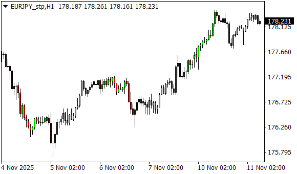 Vývoj měnového páru EUR/JPY (1hodinový graf - H1):