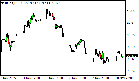 Vývoj dolarového indexu USDX (1hodinový graf - H1):
