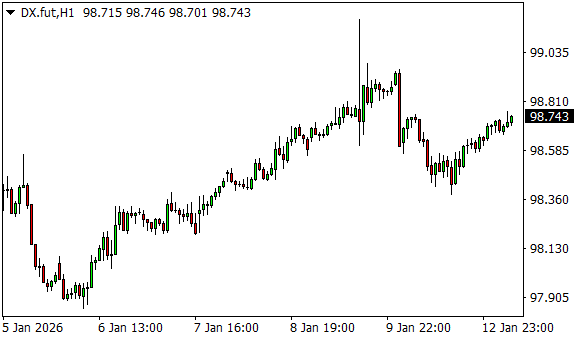 Vývoj dolarového indexu USDX (1hodinový graf - H1):