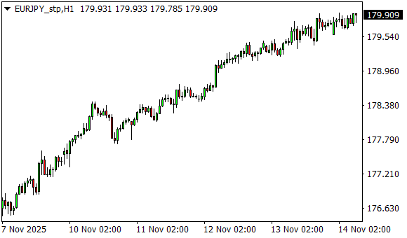 Vývoj měnového páru EUR/JPY (1hodinový graf - H1):