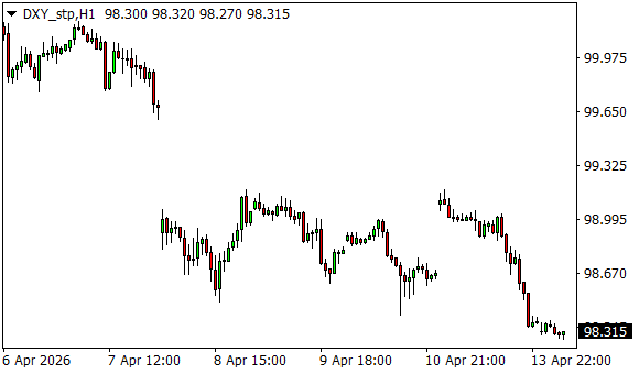 Vývoj dolarového indexu USDX (1hodinový graf - H1):
