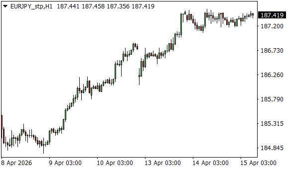 Vývoj měnového páru EUR/JPY (1hodinový graf - H1):
