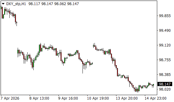 Vývoj dolarového indexu USDX (1hodinový graf - H1):