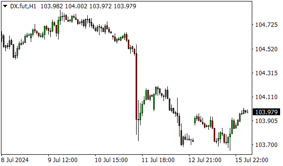Vývoj dolarového indexu USDX (1hodinový graf - H1):