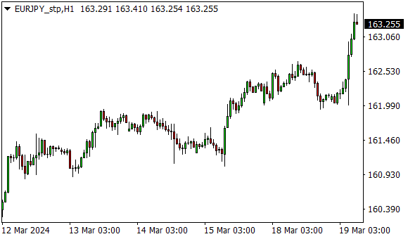 Vývoj měnového páru EUR/JPY (1hodinový graf - H1):