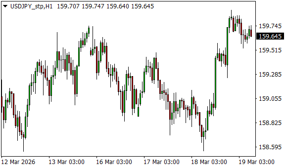 Vývoj měnového páru USD/JPY (1hodinový graf - H1):