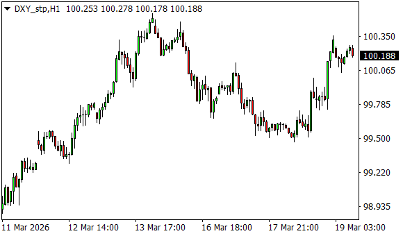 Vývoj dolarového indexu USDX (1hodinový graf - H1):