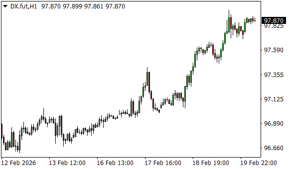 Vývoj dolarového indexu USDX (1hodinový graf - H1):