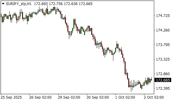 Vývoj měnového páru EUR/JPY (1hodinový graf - H1):