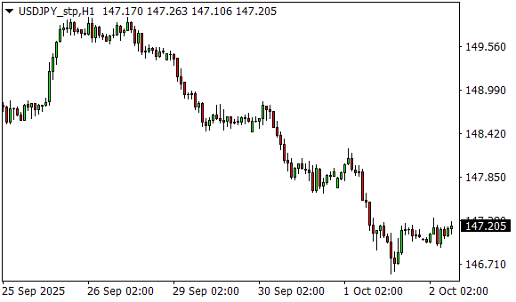 Vývoj měnového páru USD/JPY (1hodinový graf - H1):