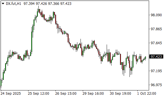 Vývoj dolarového indexu USDX (1hodinový graf - H1):
