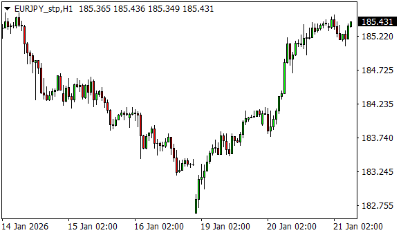 Vývoj měnového páru EUR/JPY (1hodinový graf - H1):