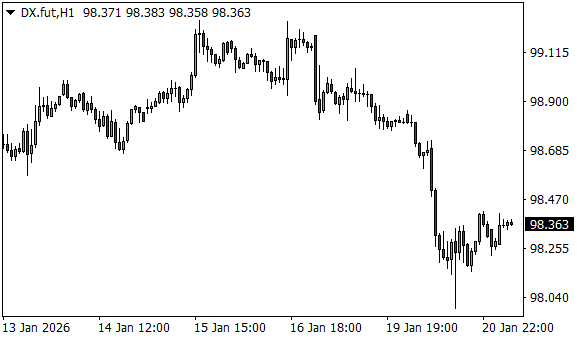 Vývoj dolarového indexu USDX (1hodinový graf - H1):