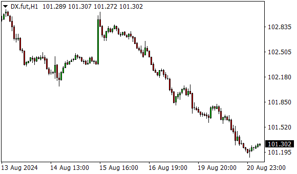 Vývoj dolarového indexu USDX (1hodinový graf - H1):