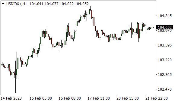 Vývoj dolarového indexu USDX (1hodinový graf - H1):