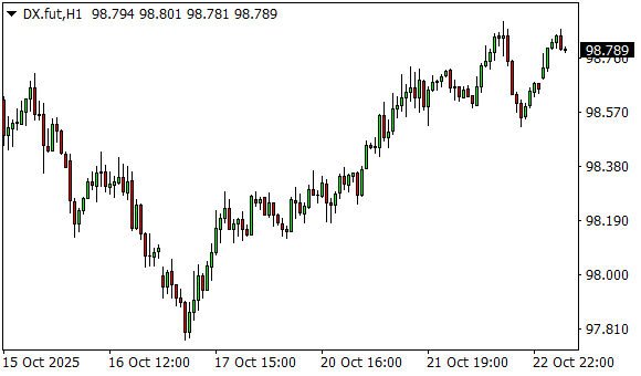 Vývoj dolarového indexu USDX (1hodinový graf - H1):