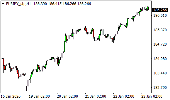 Vývoj měnového páru EUR/JPY (1hodinový graf - H1):