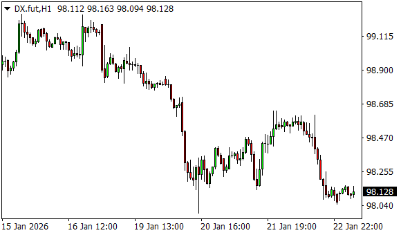 Vývoj dolarového indexu USDX (1hodinový graf - H1):