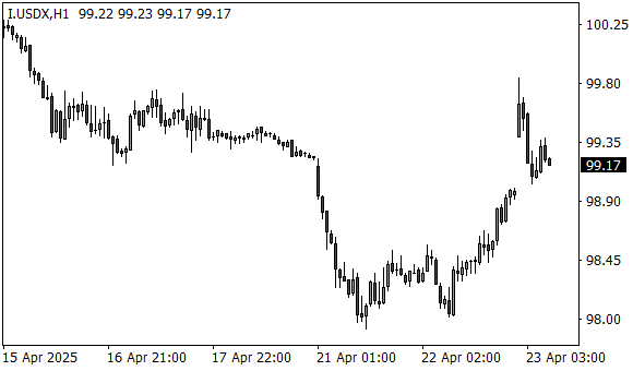 Vývoj dolarového indexu USDX (1hodinový graf - H1):