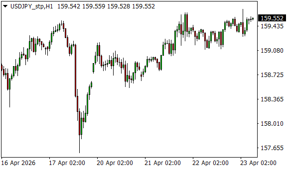 Vývoj měnového páru USD/JPY (1hodinový graf - H1):
