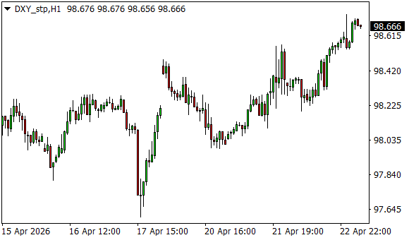 Vývoj dolarového indexu USDX (1hodinový graf - H1):