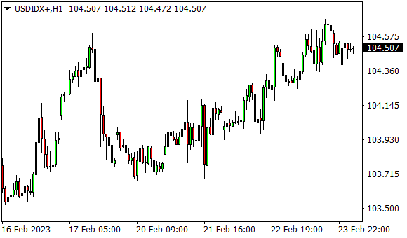 Vývoj dolarového indexu USDX (1hodinový graf - H1):