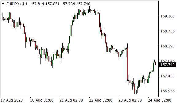 Vývoj měnového páru EUR/JPY (1hodinový graf - H1):