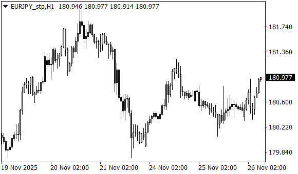 Vývoj měnového páru EUR/JPY (1hodinový graf - H1):