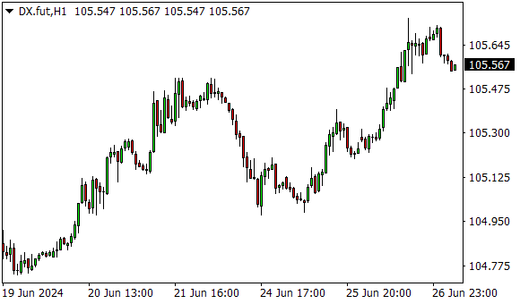 Vývoj dolarového indexu USDX (1hodinový graf - H1):