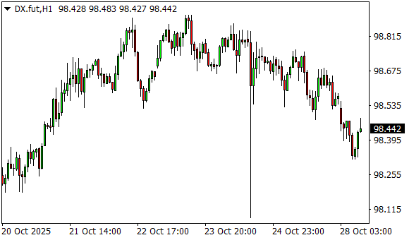 Vývoj dolarového indexu USDX (1hodinový graf - H1):
