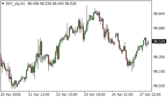 Vývoj dolarového indexu USDX (1hodinový graf - H1):