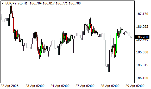 Vývoj měnového páru EUR/JPY (1hodinový graf - H1):