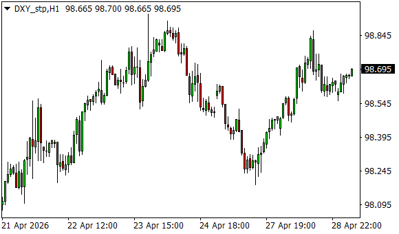 Vývoj dolarového indexu USDX (1hodinový graf - H1):