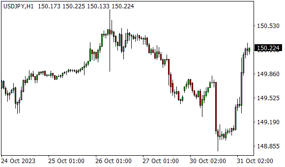 Vývoj měnového páru USD/JPY (1hodinový graf - H1):