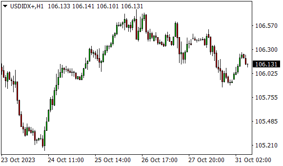 Vývoj dolarového indexu USDX (1hodinový graf - H1):