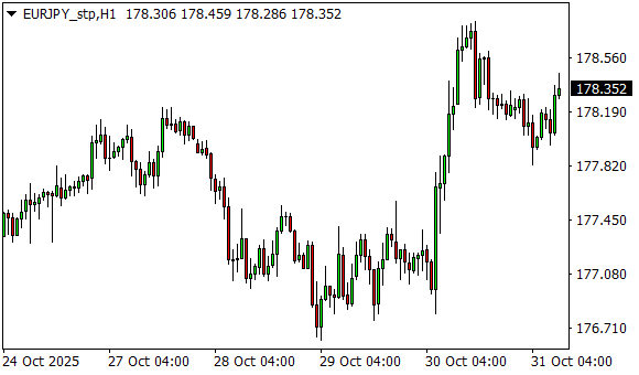Vývoj měnového páru EUR/JPY (1hodinový graf - H1):