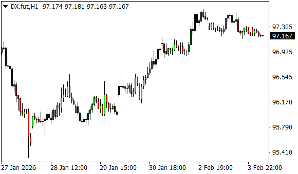 Vývoj dolarového indexu USDX (1hodinový graf - H1):