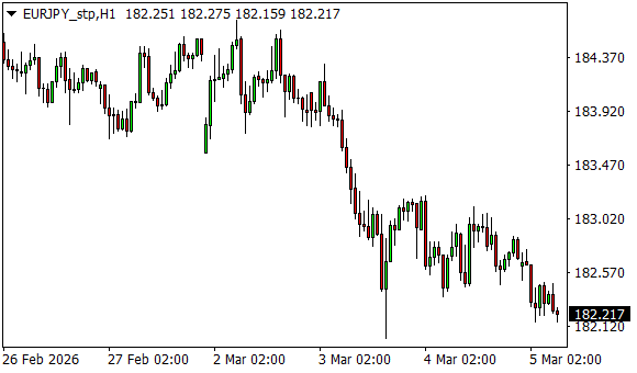 Vývoj měnového páru EUR/JPY (1hodinový graf - H1):