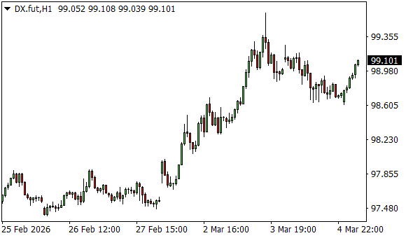 Vývoj dolarového indexu USDX (1hodinový graf - H1):