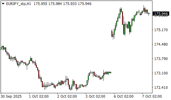 Vývoj měnového páru EUR/JPY (1hodinový graf - H1):