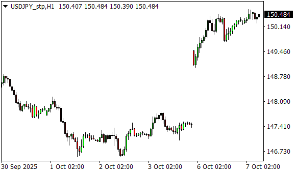 Vývoj měnového páru USD/JPY (1hodinový graf - H1):