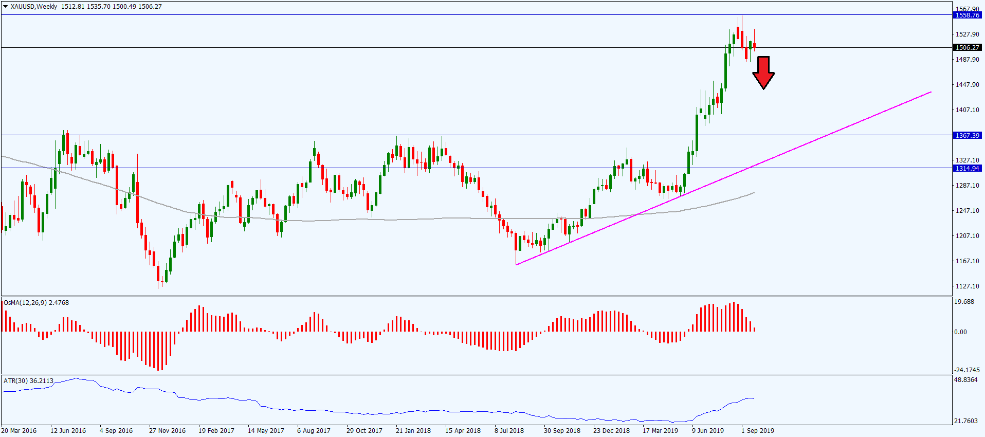Ako som natiahol na weekly grafe trendovú líniu, tak vidno ako trh precenil tento nárast a prišiel parabolický rast, ktorý je skôr vídaný na kryptomenách. Teraz by som zlato určite nekupoval (ak ho nebudú ovplyvňovať fundamenty kvôli možnej kríze), pretože je mimo „normálu“. Ak sa vráti na jeden z ukázaných supportov, vidím dobrú príležitosť na nákup. Každopádne teraz to vyzerá iba na short späť k trendovej línii.