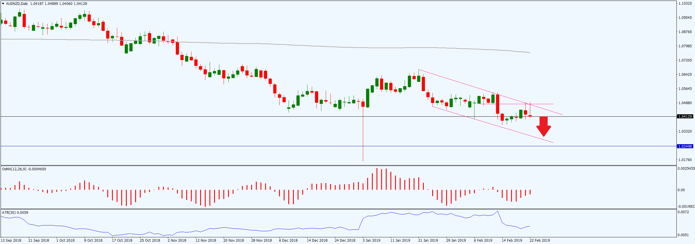 AUD/NZD už je v downtrende niekoľko mesiacov a nevyzerá že len tak skončí. Aj keď tam bol náznak otočky trendu po flash crashy, tak sa trh otočil naspäť dole a momentálne sa vytvoril sell signal. AUD/NZD downtrenduje v takom menšom trendovom kanáli a posledné 2 sviečky ho odmietli breaknúť a odrazili sa späť dole. Teraz by som očakával minimálne prekonanie najbližšieho low a prípadne aj otestovanie dolnej trendovej línie kanála.