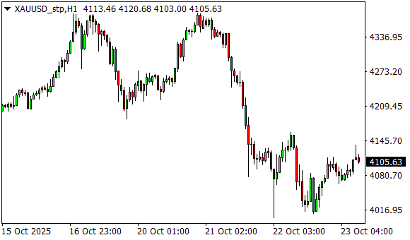 Vývoj ceny zlata (1hodinový graf - H1):