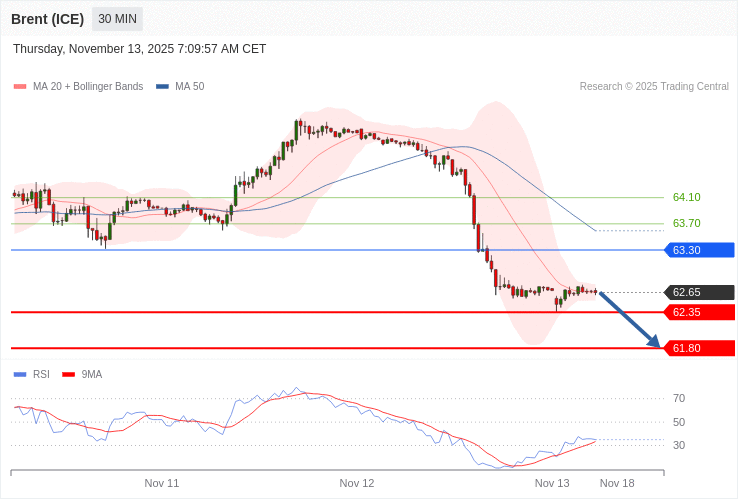 Klíčová slova: Intradenní výhled | Ropa Brent | Pozice | Rezistence | Ropa | Short | Trading | Brent | Pivot | Trading Central | Supporty a rezistence | Výhled | Krátké (short) pozice | Pokles | Růst | Průraz | Supporty |