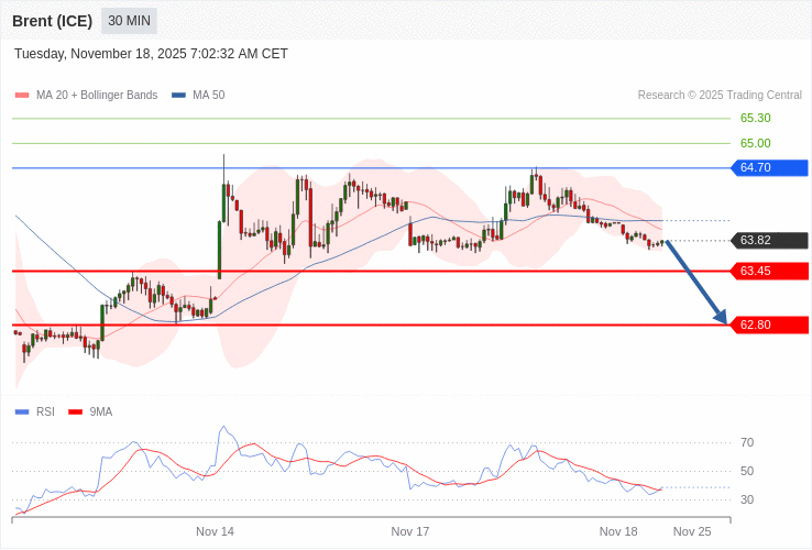 Klíčová slova: Intradenní výhled | Ropa Brent | Pozice | Rezistence | Ropa | Short | Trading | Brent | Pivot | Trading Central | Supporty a rezistence | Výhled | Krátké (short) pozice | Pokles | Růst | Průraz | Supporty |