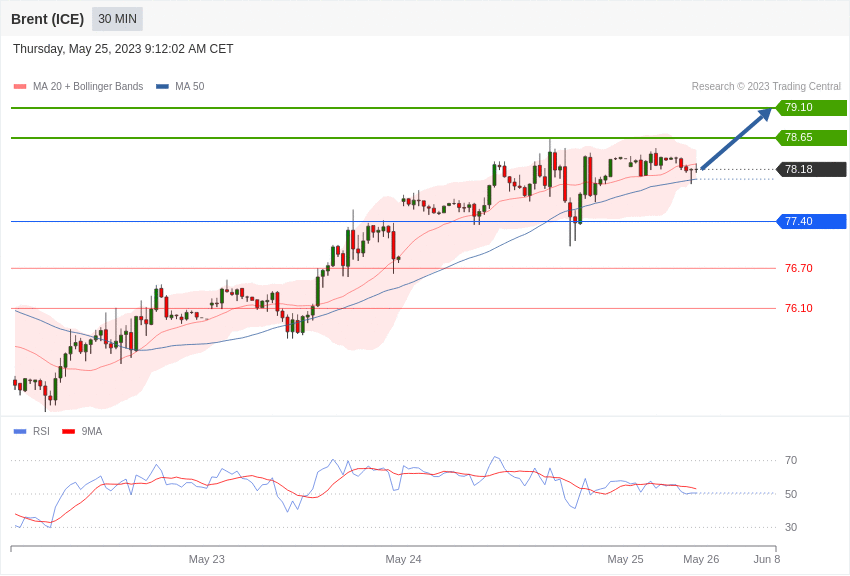 Preferovaný scénář: Dlouhé (long) pozice nad 77,40 s cílem na 78,65 a dále pak až na 79,10.